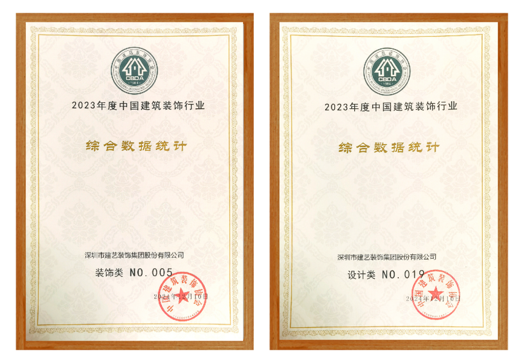 會上,中國建筑裝飾協會權威發布《2023年度中國建筑裝飾協會行業綜合數據統計結果》,建藝集團憑借行業領域內過硬的專業實力和優質的項目工程,自2011年以來連續13年入圍中國建筑裝飾行業百強前十名今年繼續榮登裝飾類榜單第5名、設計類榜單晉升至第19名。