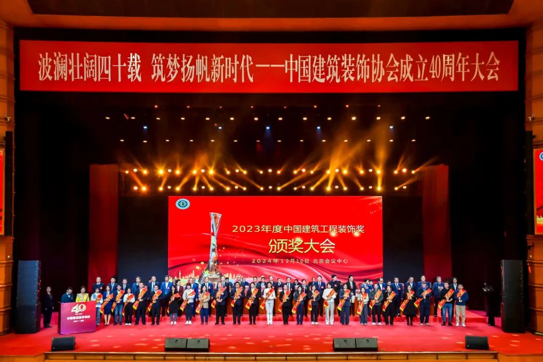 2024年12月10日,中國建筑裝飾協會九屆四次理事會、九屆六次常務理事會暨中國建筑裝飾協會成立40周年大會在北京盛大召開,會上同期發布《2023年度中國建筑裝飾協會行業綜合數據統計結果并頒發“中國建筑工程裝飾獎”。
