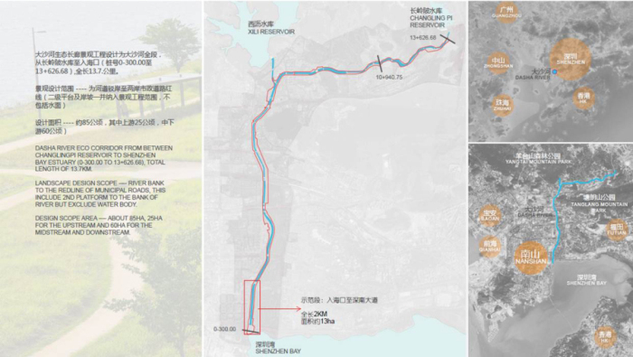大沙河生態(tài)長廊是深圳市“十二五”規(guī)劃重大項目“大沙河創(chuàng)新走廊”建設的重要組成部分。負責設計的深圳市國家級科技領軍人才、北林苑景觀及建筑規(guī)劃設計院楊海軍教授表示,它是聯(lián)通羊臺山、塘朗山森林生態(tài)系統(tǒng)與深圳灣海灣生態(tài)系統(tǒng)的生態(tài)廊道,是深圳“四帶六廊”基本生態(tài)格局中山脈支撐帶和濱海生態(tài)帶之間的重要廊道,在深圳自然生態(tài)網(wǎng)絡格局中具有重要意義。