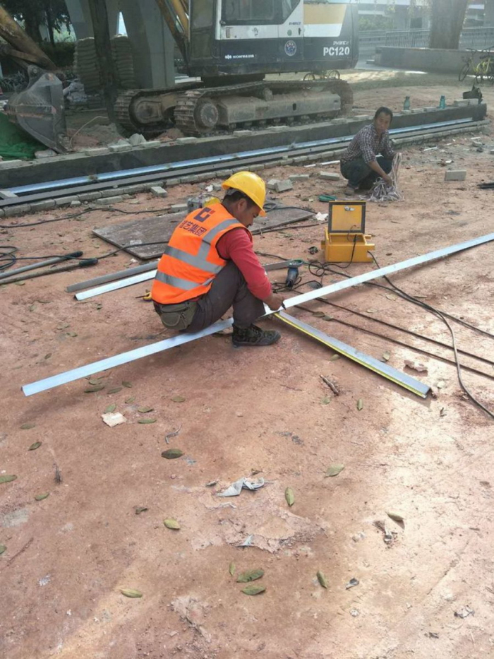 排水溝處角鋼及鋼筋焊接