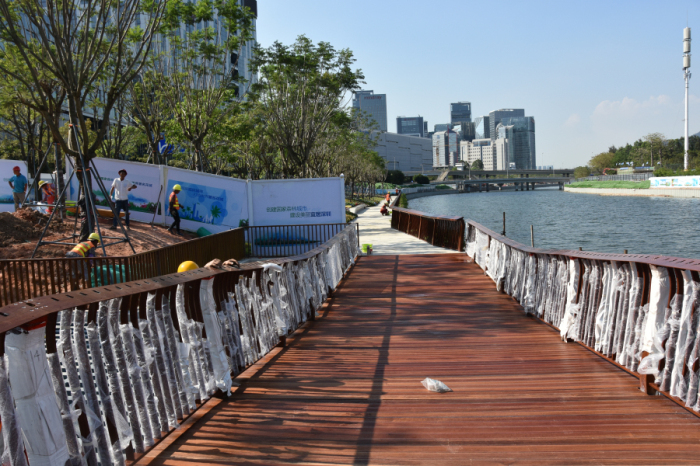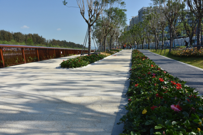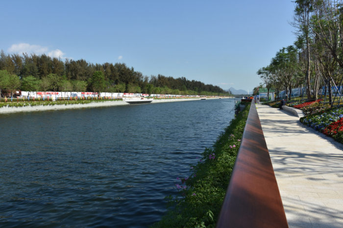 劉總表示:本著“為人民造福、為社會添彩”之宗旨,在嚴把質量關的同時,建藝團隊始終嚴格把控現場每個環節,并充分貫徹綠色環保標準,以高度負責的專業精神,配合技術一流、專業素質過硬的核心團隊精心雕琢。目前,人行道石材鋪裝、自行車道路基施工、截污口裝飾、沿河欄桿施工等正有條不紊進行中,總體形象進度已達70%。在政府部門及社會大眾的關注與期盼下,建藝集團等施工單位定不負囑托,以高標準、高素質的專業精神,裝點南山“母親河”,打造“綠色新標桿”!