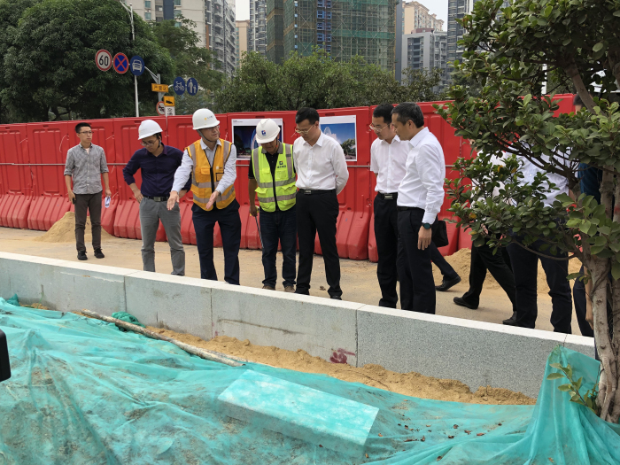 11月13日,寶安區委書記姚任、副區長朱恩平帶隊到四方公園項目現場,就景觀設計方案等進行考察。華潤、建藝集團等單位的相關負責人在現場陪同參觀,并就項目整體設計、施工要點等進行了介紹及匯報。