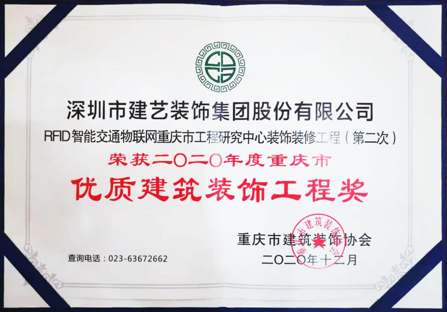 繼榮獲“中國建筑工程裝飾獎”殊榮后,建藝集團承建項目——RFID智能交通物聯網重慶市工程研究中心裝飾工程近日再獲“2020年度重慶市優質建筑裝飾工程獎”。