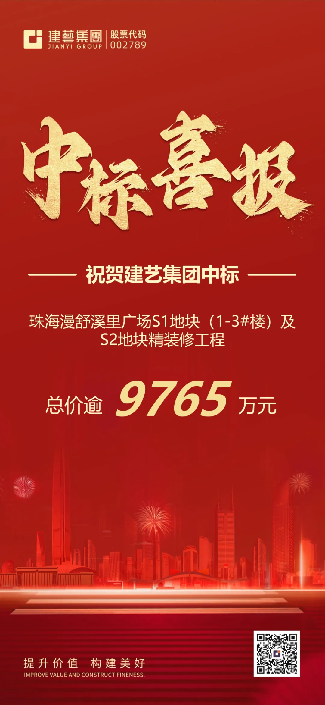【喜報(bào)】建藝集團(tuán)新晉中標(biāo)珠海市重點(diǎn)項(xiàng)目,總價(jià)逾9765萬(wàn)元