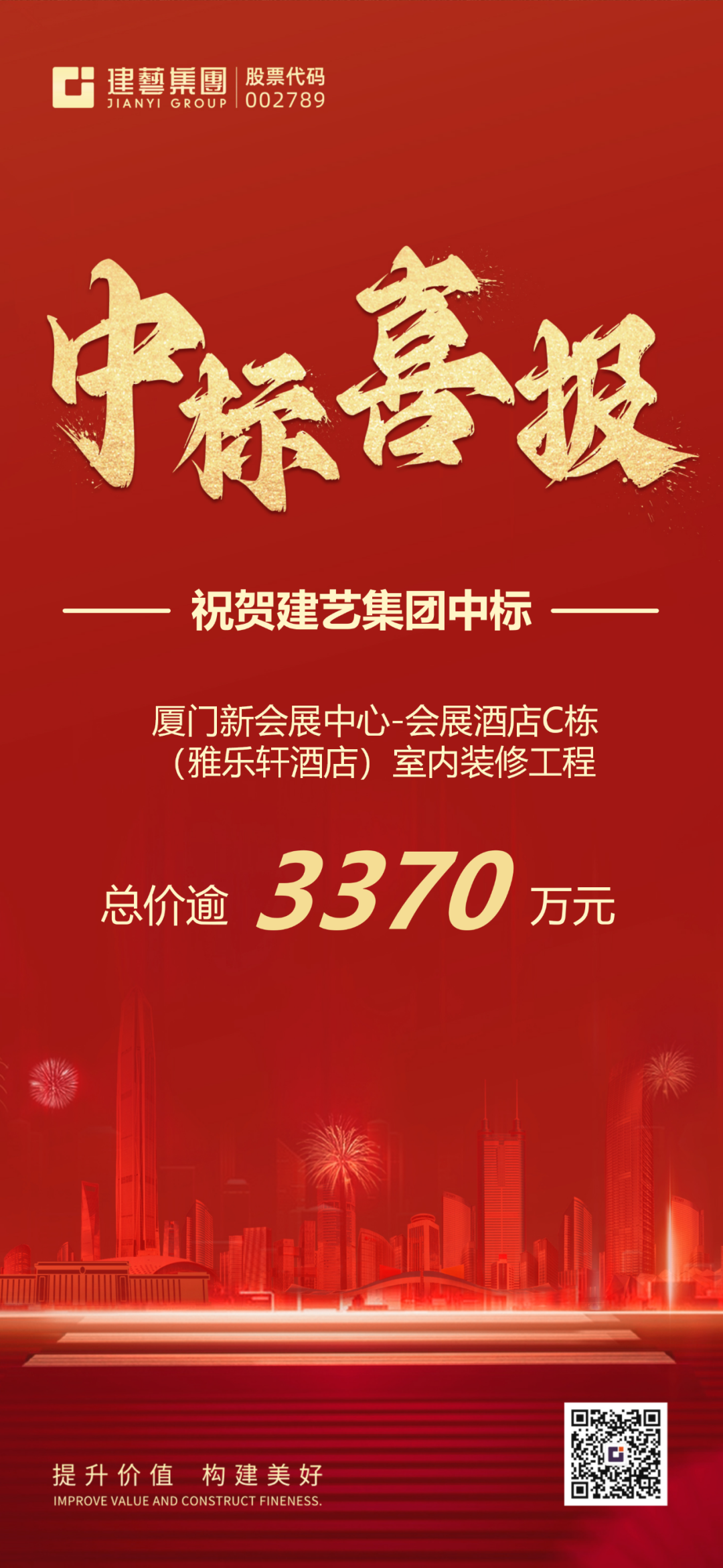 近期,深圳市建藝裝飾集團股份有限公司及旗下子公司廣東建星建造集團有限公司、廣東粵明綠能科技有限公司中標捷報頻傳,接連中標多項項目,總價逾1.03億元。