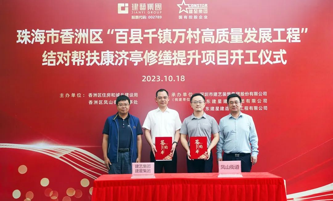 今年以來,廣東全面吹響了“百縣千鎮(zhèn)萬村高質(zhì)量發(fā)展工程”奮進(jìn)號角,珠海市委市政府全面響應(yīng)、深入實施,積極動員全市上下快速投入 “百千萬工程”樣板打造,描繪城鄉(xiāng)區(qū)域協(xié)調(diào)發(fā)展“新藍(lán)圖”。10月18日,建藝集團(tuán)與旗下控股子公司建星集團(tuán)結(jié)對幫扶“康濟(jì)亭修繕提升工程”開工儀式在南溪村舉行。