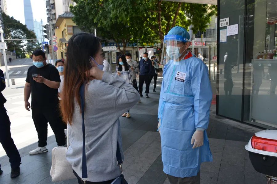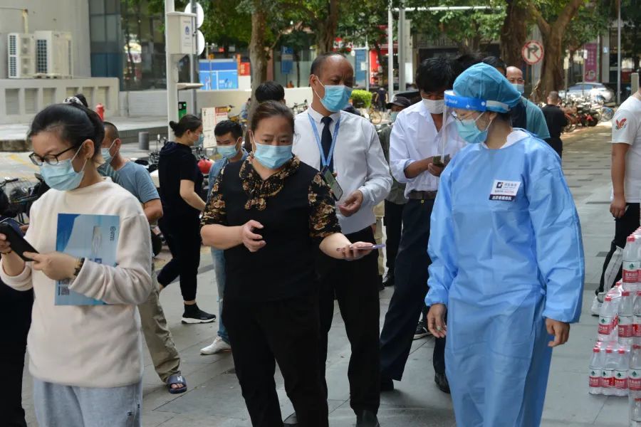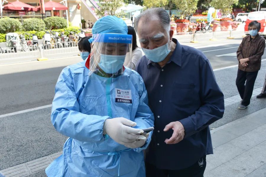 在轄區核酸檢測點,志愿者們充分發揮團隊協作意識,主動溝通,有條不紊處理各類現場事務工作。在兩天時間內,上至花甲老人,下至年幼兒童,只要現場有需求及疑問,志愿者們都實時給予指導及回答,并配合現場安保耐心疏導、指引群眾,盡最大能力確保檢測秩序有條不紊。