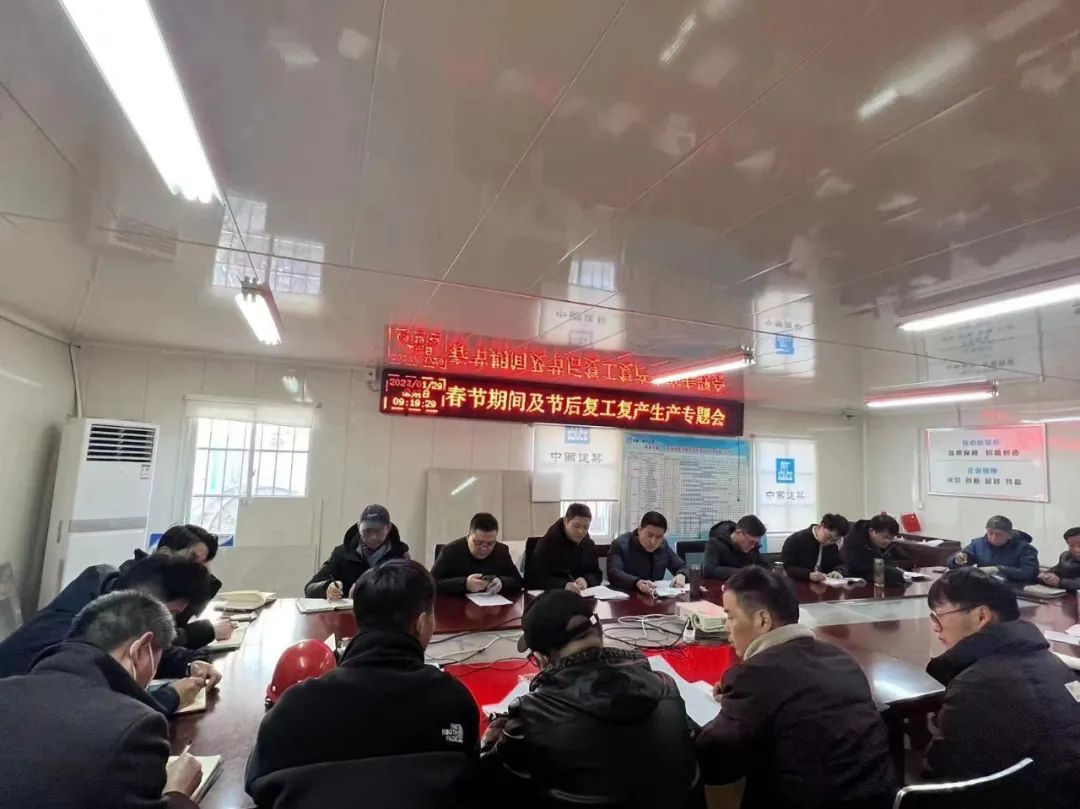 復工第一天,項目部便立即召開復工復產生產專題會,聽取各環節工程進度情況匯報,積極部署各項工作安排。會上,大家“干勁十足”,表示將嚴格按照節點要求高質量完成項目建設。